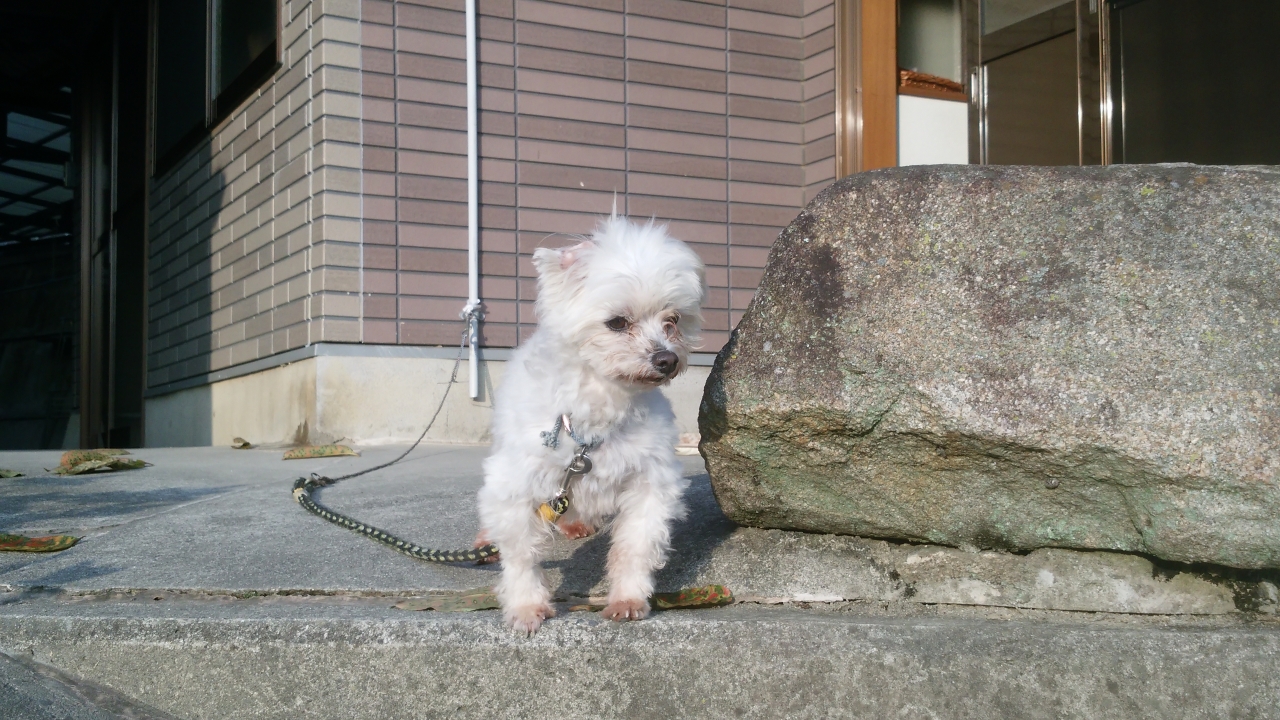 毎朝会社に出勤すると玄関先で出迎えてくれる子(わんこ)がいます。僕の名前は「マロン」といいます。ご主人は神保 社長で家に来て8年になります。僕は毎朝出勤してくる社員さんにかまってもらおうと愛嬌を振りまき和ますのが僕の仕事です。