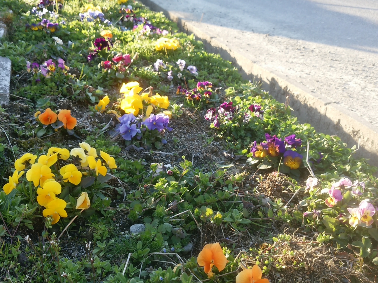右側の写真は資材置場周辺の小さな花々が綺麗に咲いています。(心優しい農園長が丹精込めて育てています)